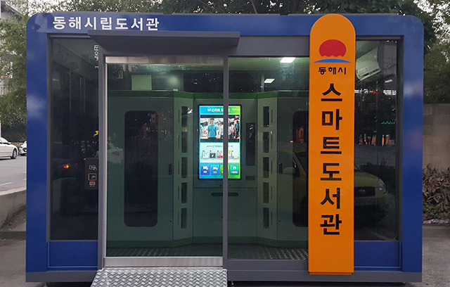 시에서 처음 시행하는 스마트도서관 서비스는 도서관 방문이 어려운 시민들이 공영 버스터미널과 천곡동 행정복지센터에서 편리하게 도서를 이용할 수 있도록 시스템을 구축했으며 동해시립도서관 회원이면 누구나 이용이 가능하다.