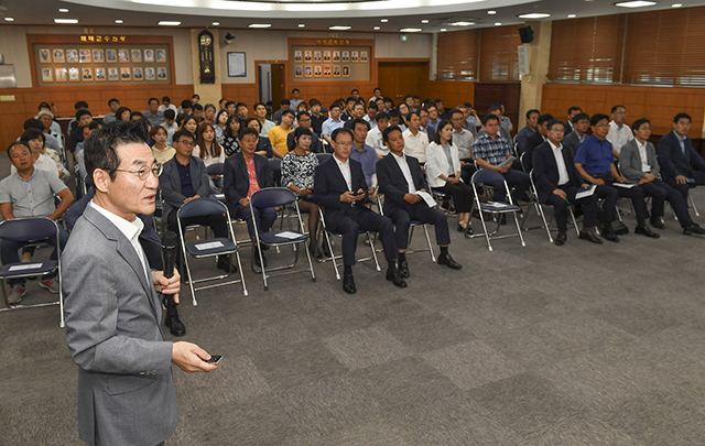 김중석 위원은 이날 강연을 통해 중앙정부의 일방적이고 획일적인 하향식 정책추진의 한계를 역설하면서 자치분권의 의의와 필요성, 지방의 발전 방향으로의 자치분권을 설명했다.