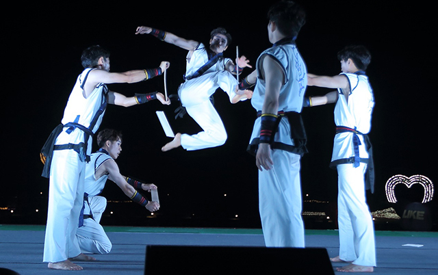 먼저 마샬아츠 퍼포먼스 ‘혼’이 매일 두 차례(오후 6시 40분, 오후 8시, 월요일 휴무) 오는 19일까지 열린다. 퍼포먼스 ‘혼’은 음향오행사상을 바탕으로 한글, 태권도, 아리랑을 예술적으로 결합한 작품이다.