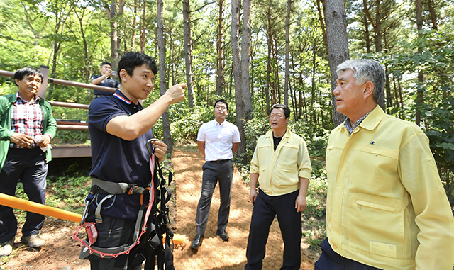 최승준 강원 정선군수는 전국적으로 연일 폭염이 이어지고 있는 가운데 병방산 군립공원 일원에 추진하고 있는 자연체험시설 및 동강녹색 모험의 숲 조성사업 현장에 대한 안전점검에 나섰다.