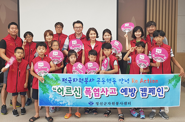 이번 캠페인은 지난달 14일 정선군 가족봉사단을 비롯한 봉사단체, 개인 봉사자 등 100여 명이 참여한 가운데 폭염대비 주의 사항, 대처요령, 온열질환 예방 등에 대한 교육을 실시하고 캠페인 활동을 전개하고 있다.