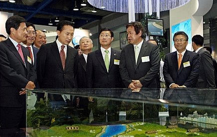 | ▲ 이명박 대통령이 1일 오전 서울 삼성동 코엑스에서 열린 제2회 지역투자박람회 개막식에 참석해 4대강살리기 사업관을 관람하고 있다. ⓒ뉴시스 |