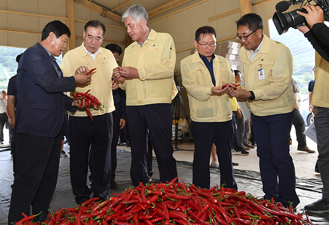 이개호 농림축산식품부 장관이 15일 강원 정선읍 광하리의 고추 작황 및 수급상황을 점검하기 위해 현장을 방문했다.