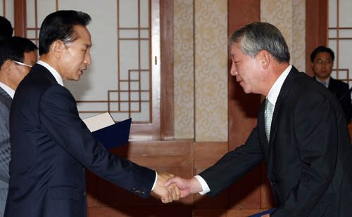 | ▲ 불법사찰 '몸통'으로 의심받는 이명박 대통령과 권재진 법무부장관 ⓒ청와대 |