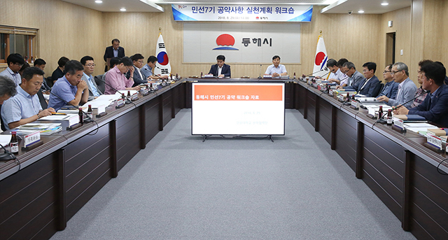 강원 동해시(시장 심규언)는 민선7기 공약사항 실천계획 워크숍을 29일 시청회의실에서 개최했다.