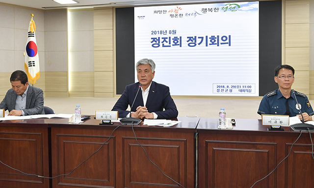 이날 월례회의는 군립병원 정상화 추진방향을 비롯한 제43회 정선아리랑제 및 가을철 축제 개최, 재해 취약지 풍수해 보험 가입, 추석연휴 종합대책, 정선군민되기 운동 참여와 홍보, 반상회 운영 활성화 시책 추진 등 지역 현안에 대한 논의로 진행됐다.