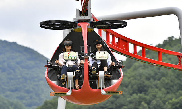 모노레일을 따라 하늘 위를 페달을 밟으며 이동하는 탑승기구는 고해상도 가상현실 VR시스템을 통해 신비하고 재미있는 곤충의 세계를 체험할 수 있다.