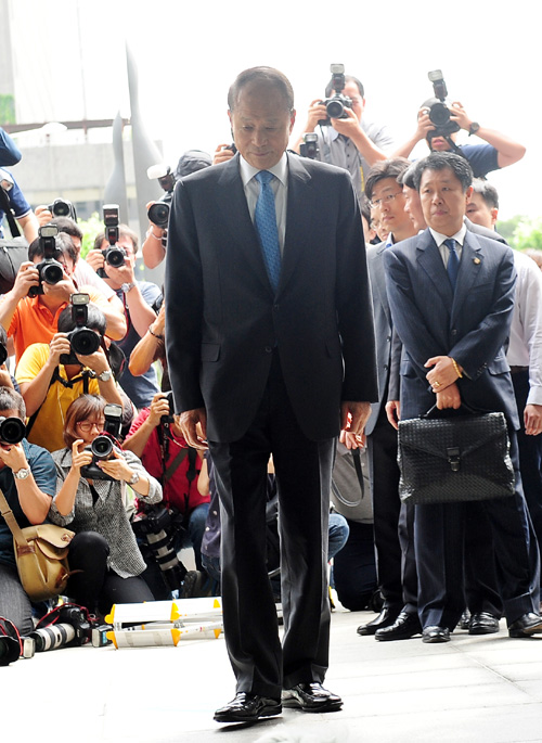이명박 대통령의 형 새누리당 이상득 전 의원이 3일 7억 원 이상의 불법 정치자금을 받은 혐의로 서초동 대검찰청 포토라인에 선 뒤 내뱉은 말이다. '대통령 친형으로서 청와대에 한마디 하고 싶은 말이 있느냐'는 질문에 이 의원은 "가슴이 아프다고 하지 않았느냐"고 재차 답변했다.