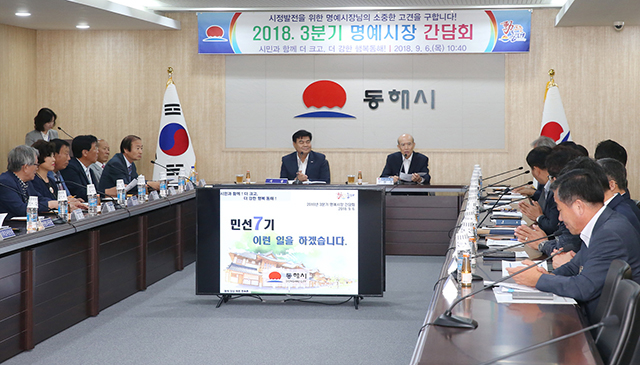 강원 동해시(시장 심규언)은 6일 회의실에서 명예시장들과 정례간담회를 갖고 현장에서 느낀 활동소감과 시정에 반영할 제안사항에 대한 의견을 나눴다.