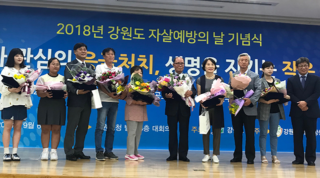 강원도청에서 6일 열린 ‘2018년 강원도 자살예방의 날 기념식’에서 삼척여자중학교가 지역사회 자살예방활동에 귀감이 된 우수기관으로 선정되어 생명사랑상을 수상했다.