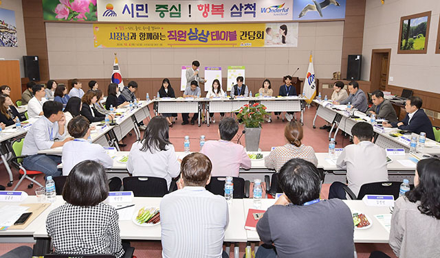 강원 삼척시는 4일 시민회의장에서 가족친화 직장문화를 만들기 위해 ‘시장님과 함께하는 직원상상 테이블 간담회’를 개최했다.