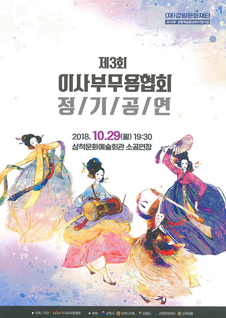 강원 삼척시 이사부무용협회(회장 원순희)는 지역민과 함께하는 전통무용으로 ‘제3회 이사부무용협회 정기공연’을 오는 29일 오후 7시 30분 삼척문화예술회관 소공연장에서 개최한다.