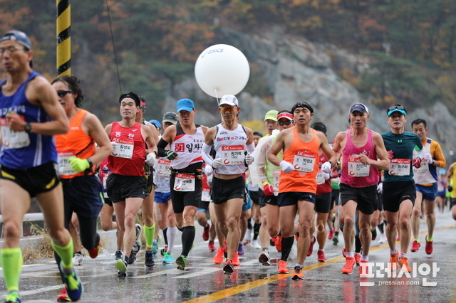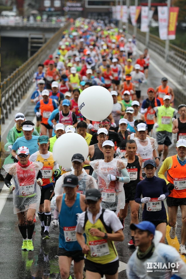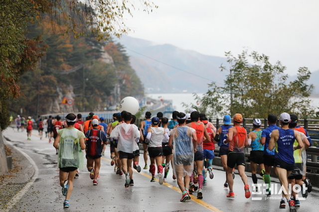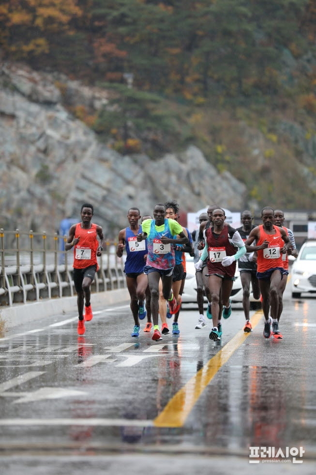 아침부터 장대비가 쏟아지고 영상 5도의 차가운 날씨속에 펼쳐진 이번 대회에는 해외 엘리트 선수 총 2개국 16명(케냐 15, 에티오피아1), 국내선수 66명, 동호인 등 2만5000여 명이 참가해 단풍으로 물들어가는 삼악산과 의암호변을 질주하며 ‘가을의 전설’을 써내려갔다.