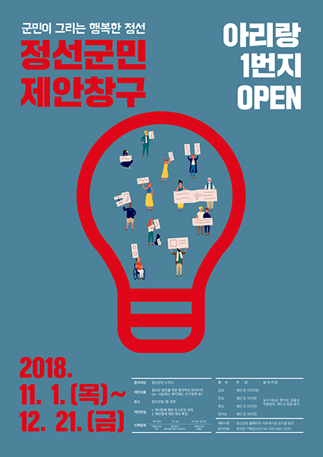 강원 정선군(군수 최승준)은 군민들의 다양하고 창의적인 정책제안을 위한 군민제안 창구인 ‘아리랑 1번지’를 운영한다고 밝혔다.