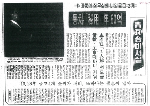 청와대 비서실장 금고인 '금고 II'의 돈 중 6억 원이 박근혜 후보에게 돌아갔다. 당시 상황과 관련해 <청와대 비서실>을 쓴 김진 현 중앙일보 논설위원은 1991는 5월 31일 <중앙일보> 기사를 통해 "본부장께서 6억 원은 유족생계비로 근혜 양에게 드리고 나머지는 가지고 오라고 하셨다"는 합수부 관계자의 증언을 보도했다.
