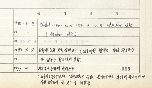 | ▲ 문화재관리대장 ⓒ프레시안 |