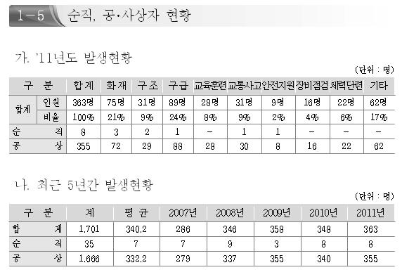 | ▲ 소방관 공상 및 순직자 현황 ⓒ소방방재청 |
