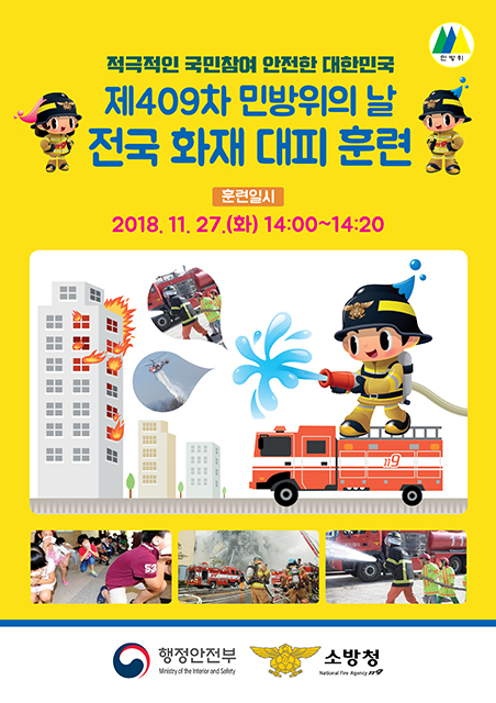 이번 훈련은 동계 대형화재 사고를 대비해 전 국민을 대상으로 화재 발생 시 건물 내 주민대피 행동요령을 익히기 위한 대피 훈련으로 진행된다.