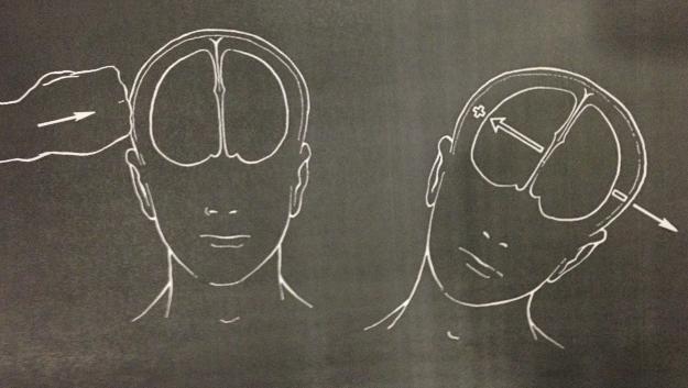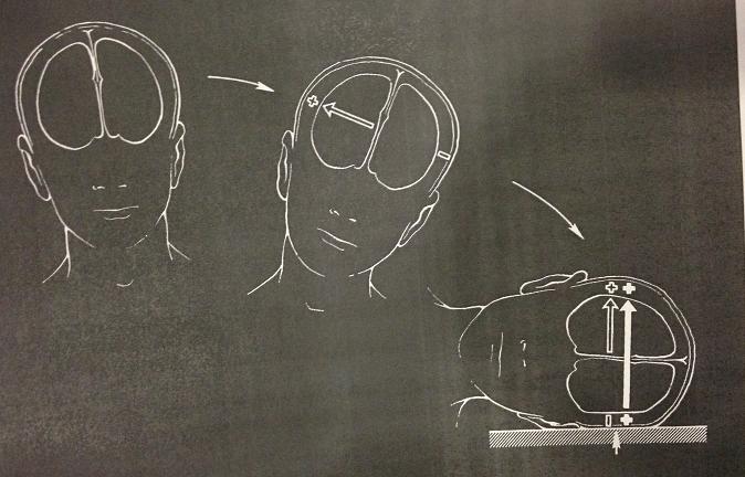 | ▲ 떨어져 다쳤을 경우 반대편 두개골에 손상이 온다. ⓒ프레시안(박세열) |