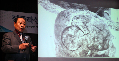 | ▲법의학자인 이정빈 서울대 명예교수가 26일 오전 서울 용산구 효창동 백범기념관에서 '장준하 선생 사인 진상 조사 공동위원회' 주최로 열린 '장준하 선생 유해 정밀 감식 국민보고대회'에서 감식 결과를 발표하고 있다. ⓒ연합뉴스 |