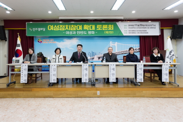 민주평화당 부산시당은 29일 오후 1시 부산시선거관리위원회 4층 대회의실에서 '여성정치참여 확대 토론회, 여성과 한반도 평화' 토론회를 열었다.