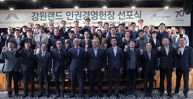 이날 인권경영헌장 선포식에는 문태곤 강원랜드 대표이사를 비롯한 임직원 400여 명이 참석해 근로자 및 회사와 관련된 이해관계자들의 인권을 보호하고 존중하는 기업문화 정착을 다짐했다.