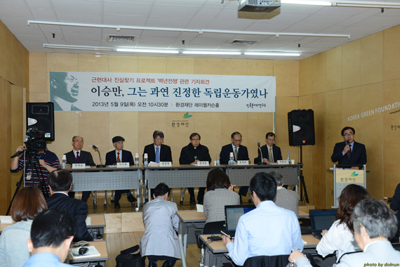 민족문제연구소는 이날 기자회견에서 최근 보수 언론의 집중적인 문제 제기로 불거진 <백년전쟁> 1편('두 얼굴의 이승만')의 이른바 '왜곡 논란'에 대해 적극적으로 반박했다. 민족문제연구소는 53페이지 상당의 반박문과 이 반박문을 뒷받침하는 145페이지 분량의 사료집을 배포했다. 이는 이승만 전 대통령의 양자인 이인수 이승만연구소 상임고문이 임헌영 민족문제연구소장 등을 고발하며 고발장에 인용했던 보수 단체와 보수 언론 등의 주장과 관련된 것으로, 총 9가지 쟁점에 대한 반박으로 이뤄져 있다. 이 가운데 몇 가지 부분은 주목할 만하다.