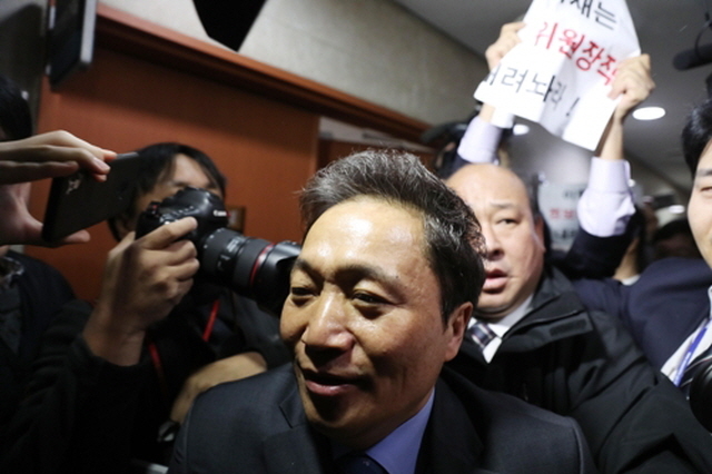 바른미래당 당원이라고 밝힌, 중·장년 남녀 5~6명이 회견을 마치고 나오는 이 의원을 향해 달려들며 "정보위원장은 내려놓고 가라", "먹튀하는 거냐", "자유한국당은 장물아비 당이냐" 등 고성으로 항의했다. 몸싸움이 벌어졌고, 미리 진을 치고 있던 쥐재진까지 뒤엉키며 일순 회견장 앞은 아수라장이 됐다.