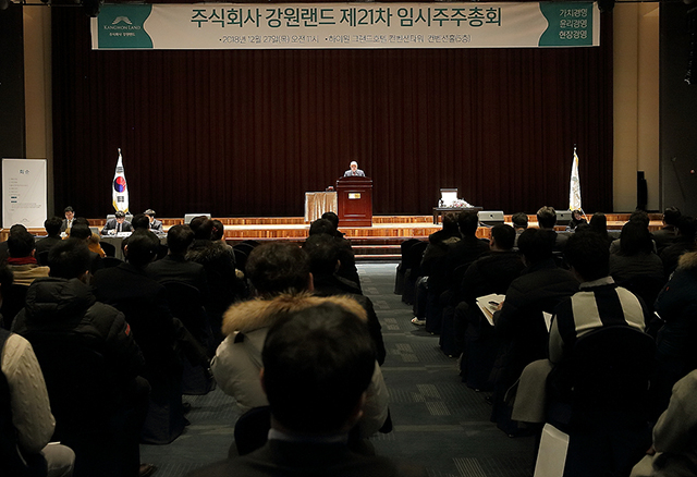 강원랜드(대표 문태곤)는 27일 하이원 그랜드호텔 컨벤션타워 컨벤션홀에서 제21차 임시주주총회를 열고, 현재 공석인 비상임이사에 이문근 전 태백시의회 의원, 이태희 고한·사북·남면·신동 지역살리기공동추진위원회 위원장, 최경식 3.3기념사업회 정선지역발전연구소 소장을 각각 선임했다.