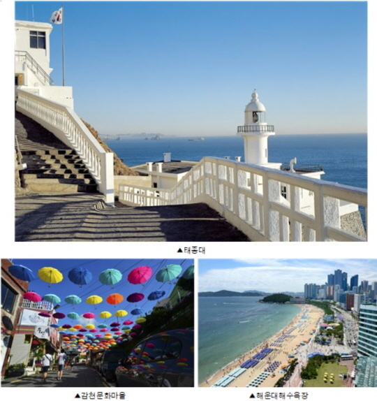 부산에서는 환상적인 해안절경에 심취할 수 있는 '태종대'가 지난 2013년 이후 연속 네 번 선정돼 부산을 대표하는 명승지로서 명성을 드높이고 있고 부산의 마추픽추라고 불리우는 '감천문화마을'도 지난 2015년 이후 세 번째 선정돼 보고 즐기는 체험 관광지로 지속적인 호응을 받고 있다.