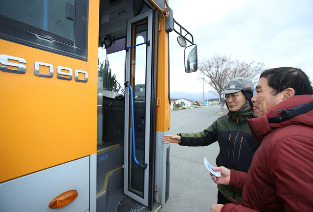 새해 첫날 이승옥 군수는 주작산에서 해맞이 행사를 마치고 1,000원 버스를 탑승했다.