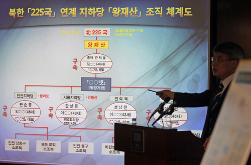 | ▲ 검찰은 北지령 간첩단 '왕재산' 적발과 관련해 브리핑을 하고 있다. 공안당국은 북한 노동당 225국과 연계된 반국가단체 '왕재산'을 조직해 간첩활동을 한 혐의로 총책 김모(48)씨 등 5명을 구속기소하고 다른 5명을 불구속 상태에서 조사 중이라고 밝혔다. 2011.8.25 ⓒ연합뉴스 |