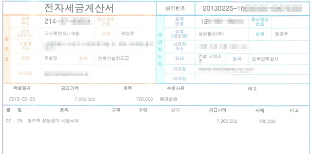 곽 대표는 이날 기자회견장에서 자신의 회사가 한 삼성 총수 일가의 자택 공사 관련 자료를 직접 공개하기도 했다. 곽 대표가 공개한 자료는 이들의 자택에 설치된 방탄유리와 유압작동식 출입문, 수영장 방수처리 공사 내역 해당 수영장 도면, 이에 대해 삼성물산 등이 집행한 세금계산서 등이었다.