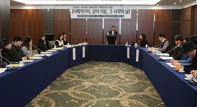 강원랜드희망재단(이사장 고광필)은 24일 하이원그랜드호텔 연회장에서 폐광지역 사회적가치 실현과 공감대 형성을 위한 토론회 ‘사회적가치, 같이 키움, 그 시작의 날’행사를 개최했다고 밝혔다.