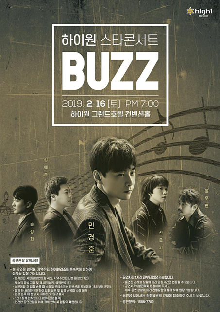 하이원리조트(대표 문태곤)는 오는 16일 오후 7시 하이원 그랜드호텔 컨벤션홀에서 인기가수 버즈가 출연하는 ‘하이원 스타콘서트’를 개최한다고 11일 밝혔다.