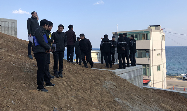 2월 현장톡톡은 지난 13일 실시했다. 묵호등대 일원 도째비골 스카이밸리 사업지 및 급경사지 붕괴위험지역 사업현장을 비롯해 신축한 묵호항 위판장과 해수 인입관 공사현장, 부곡동 농산물 종합가공센터를 방문했다.