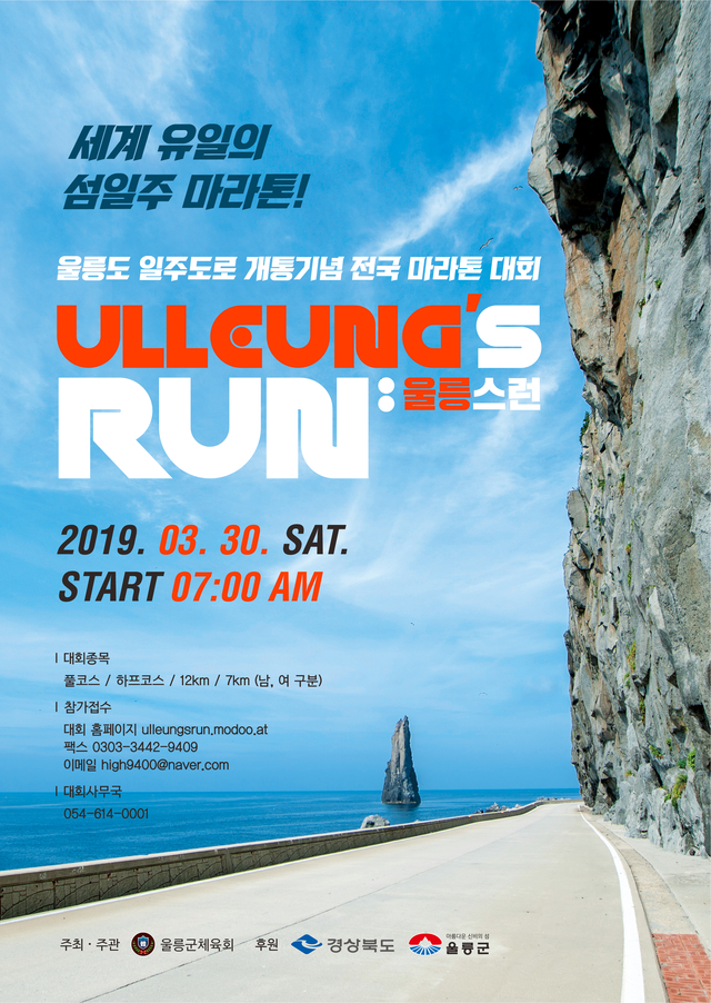 울릉군은 오는 3월 30일 울릉도 일주도로 개통기념 전국 마라톤대회를 개최한다고 밝혔다.