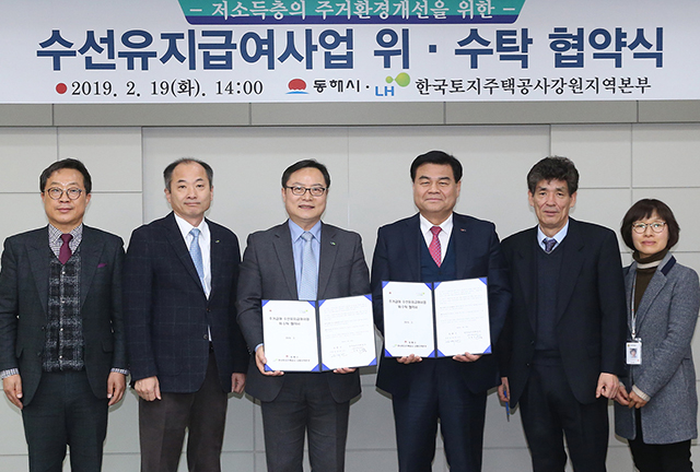동해시(시장 심규언)는 한국토지주택공사 강원지역본부와 ‘2019 수선유지 급여사업 위·수탁 협약식’을 19일 동해시청에서 개최했다.
