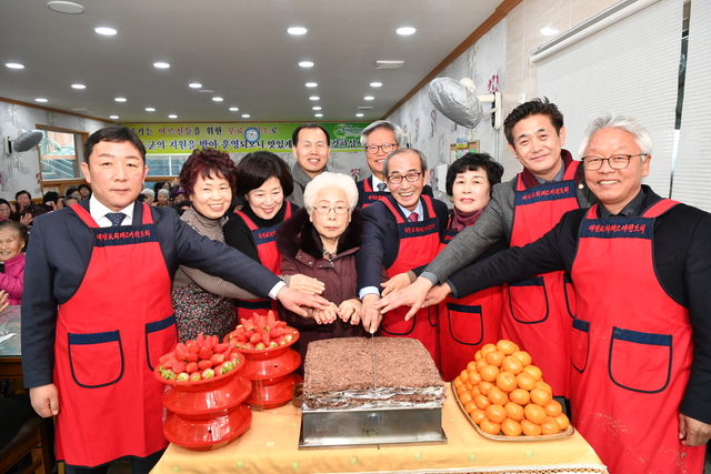 이승율 군수는 급식봉사를 직접 실천하며 “어려운 이웃을 먼저 생각하는 마음으로 무료급식 사업을 8년째 이어오고 있는 대성교회와 참여하는 자원봉사자들께 진심으로 감사를 드리며, 어르신들의 급식에 사랑과 정성을 담아 가족의 정을 느낄 수 있는 따뜻한 한 끼 식사가 될 수 있도록 최선을 다해달라”라고 당부하였다.