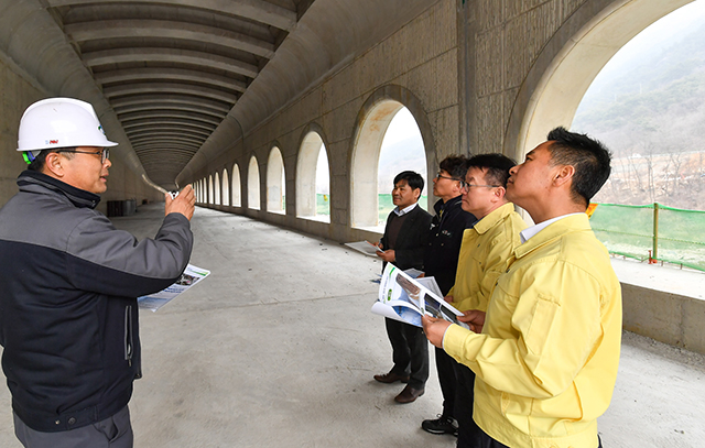 7일 현장 점검에서는 정선읍 세대2지구 급경사지 붕괴위험지역 정비공사 현장을 찾아 해빙기 변형, 변위 여부, 낙석 발생 및 공사장 안전조치 현황 등을 중점 확인했다.
