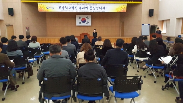 전라남도교육청(교육감 장석웅)이 12일(화) 도교육청 2층 대회의실에서 2019년 조직개편으로 신설된 교육지원청의 학교혁신팀 업무담당자 협의회를 갖고 학교혁신 전면화를 위한 체계적이고 효율적 지원을 다짐했다.