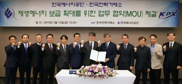 전력거래소(이사장 조영탁)와 한국에너지공단(이사장 김창섭)은 지난 15일(금) 정부의「재생에너지 3020 이행계획」의 원활한 추진을 지원하기 위해 상호 협력하는 것을 목적으로 하는 업무협약(MOU)을 체결했다.
