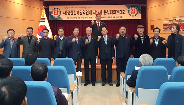광산진폐권익연대(회장 박재용)는 19일 정선군 사북읍종합복지회관에서 ‘제13차 본부대의원대회’를 통해 진폐현안 해결촉구 결의대회를 개최했다.