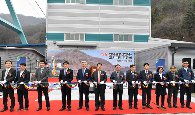 SM그룹 한덕철광산업㈜은 20일 최승준 정선군수를 비롯한 기관단체장 등이 참석한 가운데 강원 정선군 신동읍 신예미광업소에서 5년여의 공사 끝에 첨단 인양시설을 갖춘 제2수갱 준공식을 개최했다.