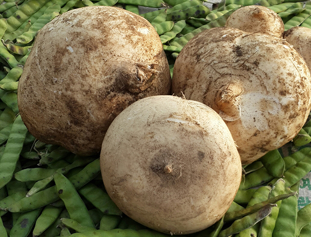 멕시코 감자로 불리는 ‘얌빈’은 아열대 원산의 콩과 덩굴성 식물로 땅속의 구근을 식용하는데 풍부한 섬유소와 저칼로리 등으로 건강 및 다이어트 식품에 적합하다.