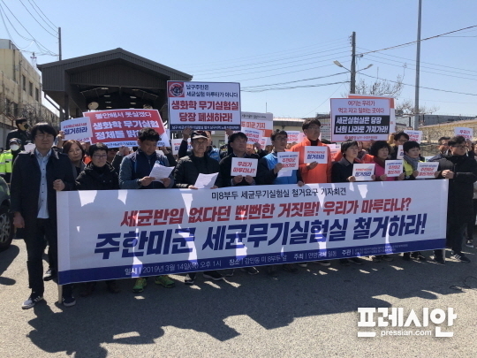그러면서 지난 3월 26일 주한미군이 보내온 공식 답변을 통해 "예산평가서에서 '살아있는 매개체 테스트(live agent test)'는 미국 내에서만 수행되며 대한민국 내에서는 시행되지 않는다"며 "주한미군은 한반도 내에서 현재까지 어떠한 생화학 실험도 하지 않았으며 앞으로도 그러할 것이다"는 내용을 보내왔다.