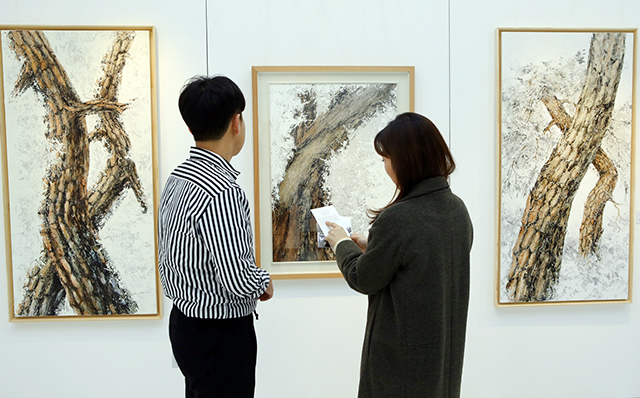 특히 이번 전시회에서 만날 수 있는 회화작품들은 지점토 혼합재료, 도자기 가루, 한지 등 독특한 재료를 사용해 자연에서 쉽게 볼 수 있는 눈, 나무, 돌을 그려내고 있어 전시장을 찾은 관람객들로부터 많은 관심을 받고 있다.