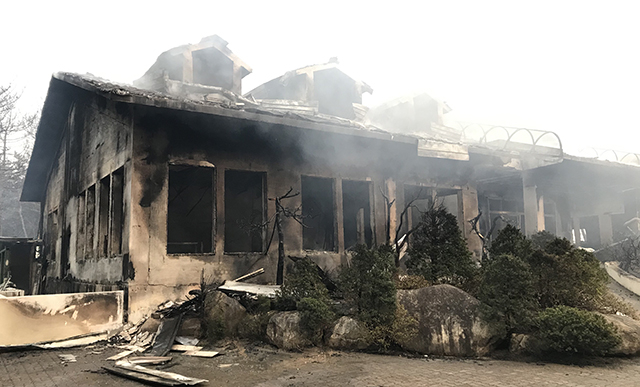 망상오토캠핑리조트 시설물 가운데 2017년 9월 완공된 한옥시설은 한옥 2동만 태우고, 다소 부분적인 보수가 필요하지만 단층 연립 3개동, 복층 연립 1개동, 로비동, 식당동, 창고동 등 대부분의 시설을 보전할 수 있게 되었습니다.