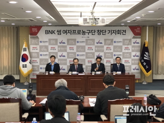 BNK캐피탈은 8일 오전 11시 부산시청 26층 회의실에서 오거돈 부산시장, 김지완 BNK금융그룹 회장, 이두호 BNK캐피탈 대표가 참석한 가운데 'BNK 썸 여자프로농구단' 창단을 공식 발표했다.