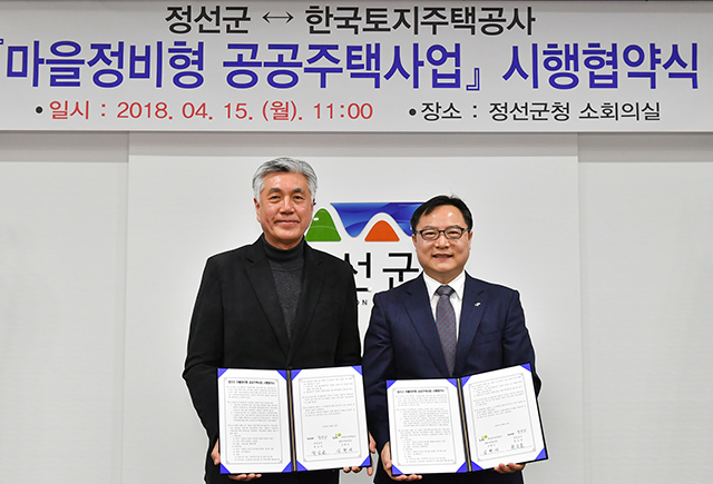 강원 정선군(군수 최승준)은 15일 군청 소회의실에서 한국토지주택공사(LH)와 마을정비형 공공주택사업 시행 협약식을 가졌다.